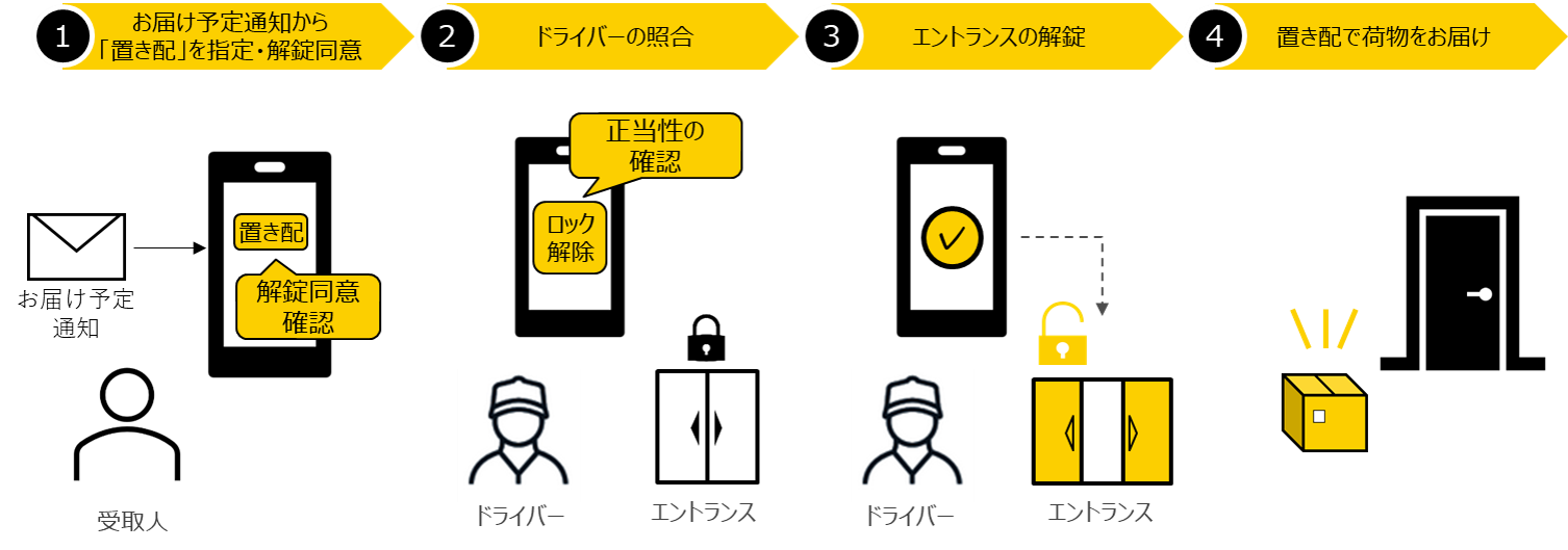 - 【オートロックの解錠から置き配までの流れイメージ】