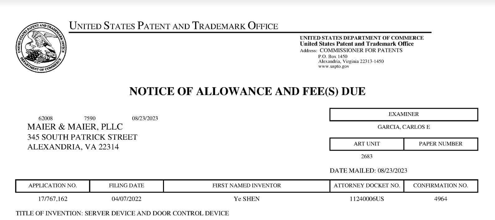この度、当社が出願しておりました【サーバ装置及び扉制御装置】について、USPTO 米国特許商標庁より、以下のとおり特許を取得したことをお知らせいたします。